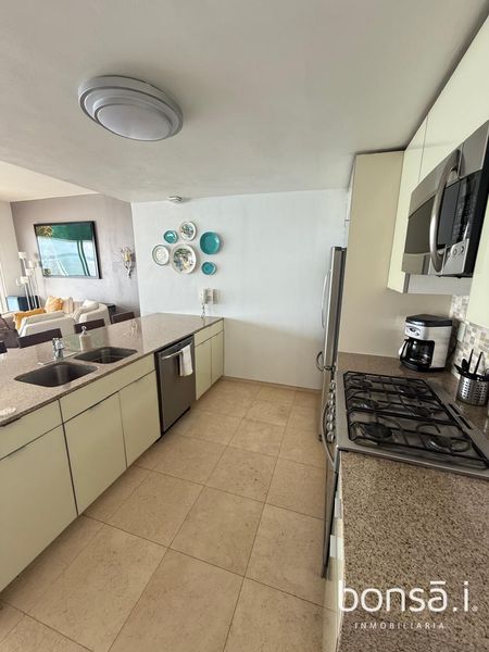 Si te gusta disfrutar de una hermosa vista frente al mar y vivir con las comodidades y amenidades de un condominio privado, te encantara este elegante condominio amueblado y equipado, cuenta con 2 recámaras cada una con su baño, cómoda y elegante sala, comedor, cocina de concepto abierto, área de lavandería, medio baño de visitas, agradable terraza con espectacular vista al mar.