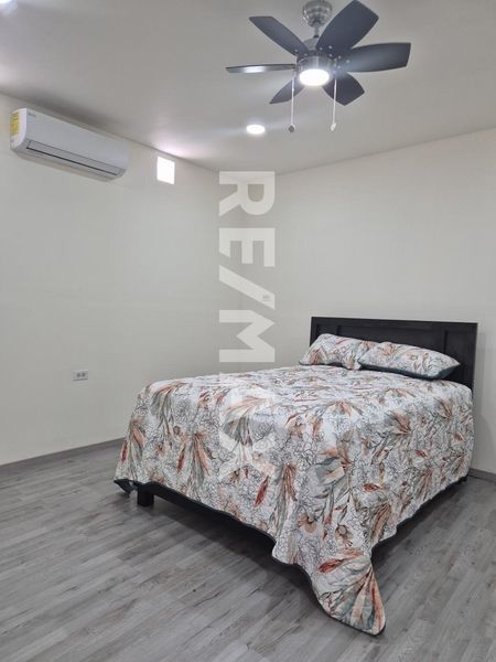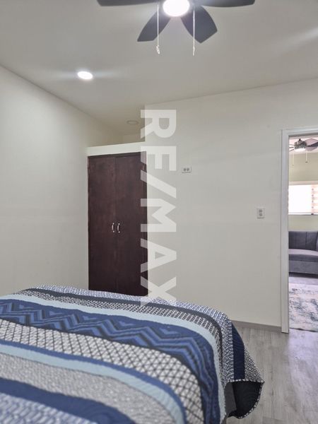Cuenta con 2 recamaras amuebladas con camas matrimoniales,ventilador ,refrigeracion y closet.