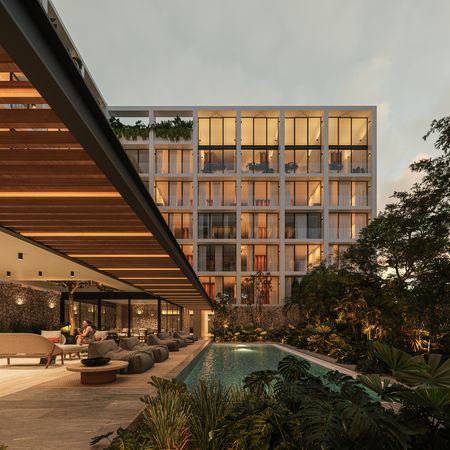 Ubicado en Temozón norte, Mérida Yucatán. Desarrollo habitacional: conjunto de 46 departamentos, un espacio donde la funcionalidad se encuentra con la belleza, creando un hogar que inspira y transforma.