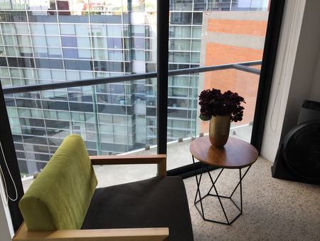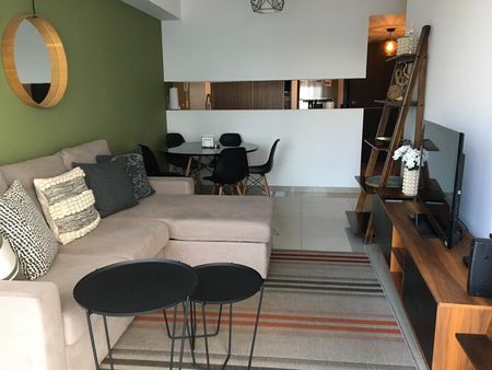 Departamento moderno en venta en “Alure” Nueva York. Con muebles y electrodomésticos. Pisos de loseta y alfombra en recámaras con cama matrimonial. La principal con baño integrado. El segundo baño completo afuera ya que también da servicio a las visitas. Balcón en las recámaras y en la estancia. Cocina abierta con todos los electrodomésticos. Muebles de buen gusto. Vigilancia las 24 horas. . Tiene roof garden con muebles baños. Alberca cubierta, mesa de billar, pequeño gimnasio y sauna con baños. Fácil acceso. Es una buena oportunidad para alguien que quiera invertir ya que se renta en RB&B por $ 1,000.00 diarios.