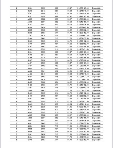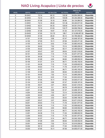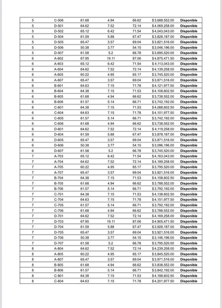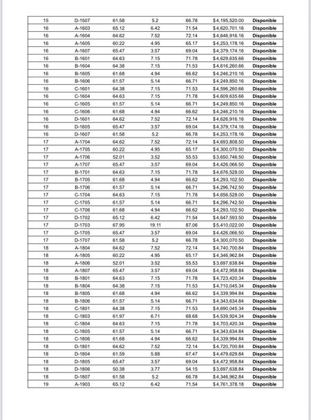 Departamentos desde 67.45m2 y hasta 199.70m2 con precios desde $3'648,187.00 y hasta $4'905,461.50 (Ver tabla de disponibilidad)