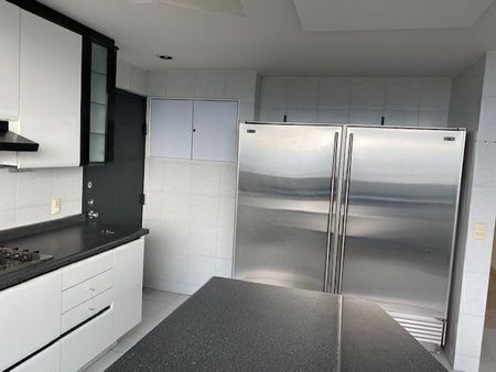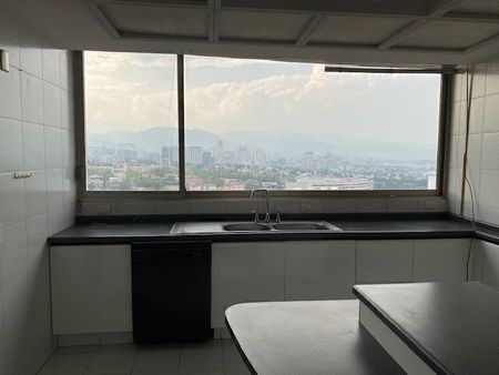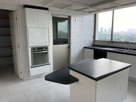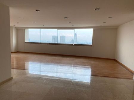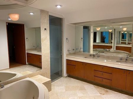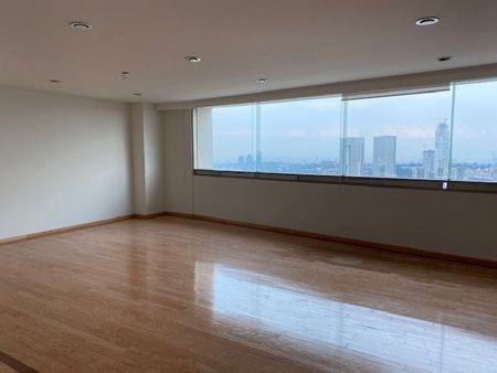 Amplio departamento en Bosques de las Lomas 385 m2 piso 15, con tres recamaras, cada una con vestidor y baño, area de TV. family, antecomedor y amplia cocina, bodega, cuatro lugares de estacionamiento.