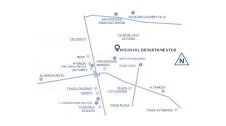 Múunyal es un desarrollo exclusivo únicamente de 12 departamentos en una de las zonas con más alta plusvalía de Mérida, tiene una ubicación privilegiada en un área con gran crecimiento residencial y comercial, muy cerca de los centros comerciales más modernos, Universidades, Hospitales, Clubs de golf y todo tipo de servicios.