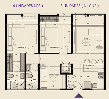 Un proyecto de 36 unidades donde los residentes pueden elegir entre dos tipos de departamentos: 1 recámara y 2 recámaras con estudio.