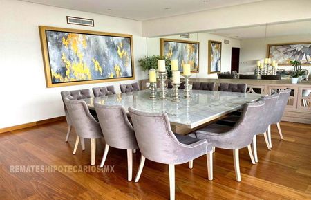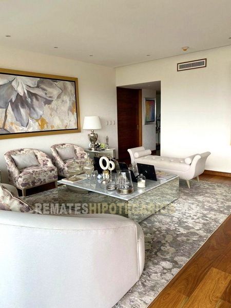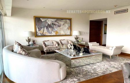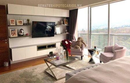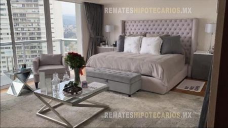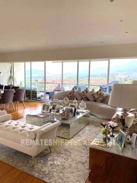 Departamento en venta en Santa Fe de Remate Bancario en piso 19 de 327 m2 de construcción con 3 recámaras, vestidor, sala de televisión o family, 3.5 baños, estancia – comedor, cocina, desayunador, cuarto de lavado, cuarto de servicio con baño, bodega, 3 estacionamientos, preciosa vista panorámica arbolada, 16 años de antigüedad. Amenidades: Alberca techada, alberca al aire libre, gimnasio, salón de usos múltiples, jardines y áreas de convivencia familiar con juegos infantiles, pista de jogging, canchas de paddle, canchas de tenis, salón de juegos para jóvenes, cafetería, bar, salón de belleza, ludoteca, restaurante, elevadores, estacionamiento para visitas, spa, vigilancia las 24 horas. Cuota de mantenimiento mensual: $16,000.00 pesos. Valor Comercial: $21 mdp. PRECIO DE REMATE BANCARIO: $11,800,000.00 PESOS. Pago directo al banco. Av. de los Poetas 100, Fraccionamiento “Cumbres de Santa Fe”, Colonia San Mateo Tlaltenango, Alcaldía Cuajimalpa de Morelos, C.P. 05348, CDMX. Los remates bancarios no se pueden adquirir mediante créditos hipotecarios, únicamente con capital propio. Revisión de expediente jurídico. Cesión de derechos ante notario público. Pago directo al banco titular de los derechos. Tenemos más de 250 inmuebles de recuperación bancaria en la Ciudad de México y alrededores. Solicita catálogo vía WhatsApp o una cita en nuestras oficinas al 5635411424 y 55 5989-7315. Para más información y propiedades visita www.remateshipotecarios.mx