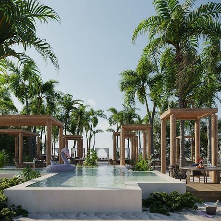 AMENIDADES: club de playa con rooftop frente al mar, 2 canchas de pádel, 5 albercas, área de grill, kids club, gym al aire libre, asoleaderos, terrazas sociales, áreas verdes, acceso controlado.