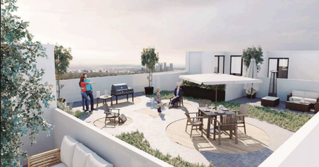 Su balcón de cinco punto noventa y dos metros cuadrados te invita a disfrutar de la vista y el aire fresco desde la privacidad de tu hogar. Además, podrás acceder a un roof garden común, perfecto para convivencias o simplemente relajarte en un espacio abierto.