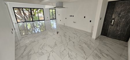 Además, cuenta con una cocina integral con barra de granito y mobiliario de cierre lento, una amplia sala-comedor, un cuarto de estudio, un medio baño para visitas y una zona de lavado integrada. No podrás resistirte a las alturas de dos punto sesenta metros en todo el departamento y la puerta principal de seguridad que garantiza la tranquilidad de tu hogar.