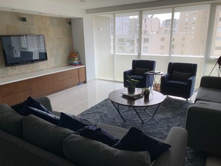 Hermoso departamento muy calientito e iluminado 3 recamaras la principal con walk-in closet y baño la segunda recámara también tiene vestidor y baño la tercera tiene baño y closet , sala que se usa como family, comedor cocina cuarto de servicio área de lavado tiene elevador de servicio y el principal, excelentes amenidades alberca gimnasio juegos para niños tiene bodega y una terraza lugares cercanos centro comercial paseo interlomas hospital Ángeles escuelas supermercados a 10 min de la Anahuac de Jesús del monte y a 15 minuto de bosque de las lomas
