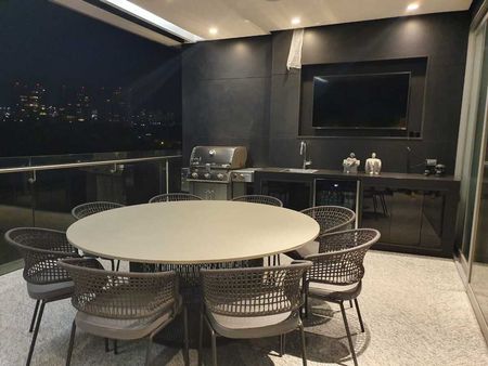 El departamento tiene muy buenos acabados de lujo, de muy buen tamaño, con elevador directo al departamento, termostato nest para aire acondicionado y calefacción de piso, Bocinas, luces inteligentes, calentadores de terraza, cortinas en terraza