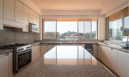 Cuatro dormitorios y un alcoba principal, cada uno con baño completo, sala de televisión con baño completo y estudio con sofás que se pueden usar como camas adicionales. Una terraza cubierta y un lavadero, mucho espacio de almacenamiento y para rematar; una espectacular terraza adecuada para un evento familiar o corporativo único en la vida.