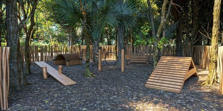 Parque para mascotas donde tus amigos peludos pueden jugar libremente.