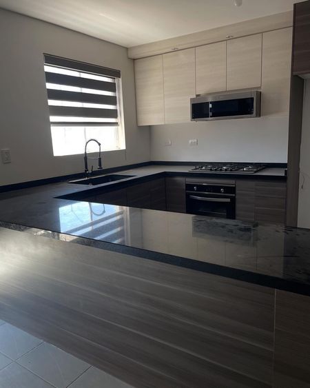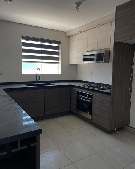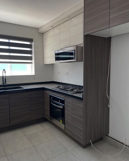 Muy bonito departamento en venta en Privalia Ambienta, dentro de condominio cerrado con vigilancia y control de accesos, frente a áreas verdes y de asadores, ubicado en quinto piso, el departamento cuenta con sala comedor con balcón, cocina totalmente equipada con barra de granito amplia con Tarja marca Teja con preparación para purificador de agua, microondas y campana oculta marca Whirlpool, parrilla, y horno marca Avera, además de una cava.