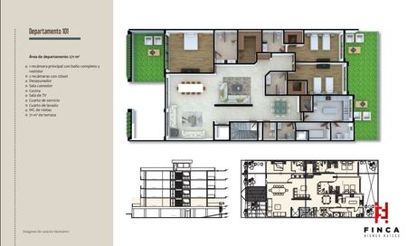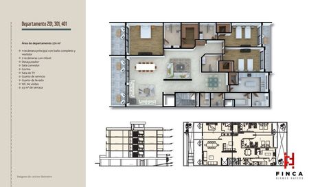 UNA CON SU BAÑO Y VESTIDOR , CUARTO DE SERVICO INTEGRADO Y 3
