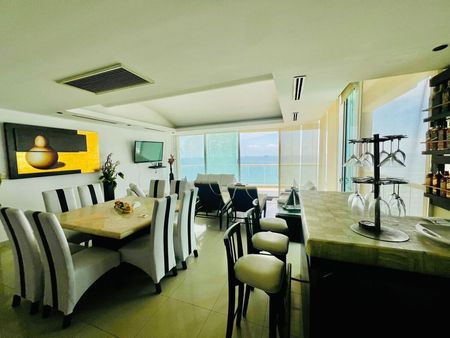 Con acabados de primera, cocina integral con barra de granito, y aire acondicionado en todos los ambientes, disfruta de tres recámaras cada una con baño completo: la principal con vestidor, terraza con vista al mar y jacuzzi, y una secundaria también con terraza privada. Ideal para relajarte, recibir amigos o admirar el atardecer desde tu espacio.