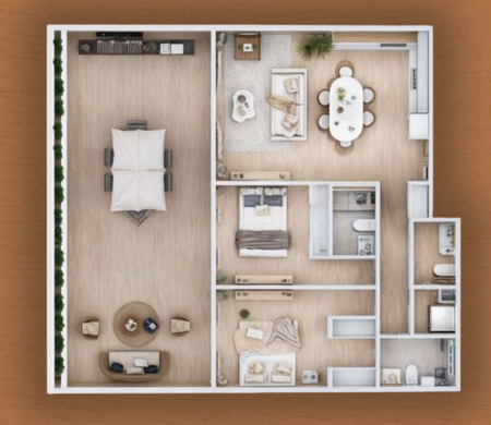 Ubicado estratégicamente con acceso inmediato a las principales avenidas de Guadalajara, ofrece comodidad absoluta para residentes, ejecutivos, visitantes y turistas, en un entorno urbano con servicios a la mano y alta demanda. Modelo C – 2 recamaras y terraza.