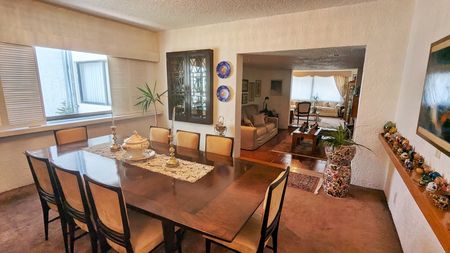 Contiene un recibidor, sala de estar con chimenea, estudio-bar con posibilidad de agregar una terraza, sala amplia, comedor amplio, cocina integral con cómodo antecomedor separado, 3 recamaras la principal muy amplia con buena iluminación, vestidor y baño completo, 2 recamara muy amplia, con gran closet y baño, 3 recamara con gran closet y muy iluminada.