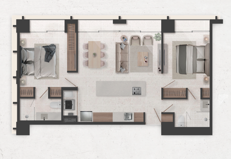 Diseñado para maximizar cada metro cuadrado, este departamento ofrece funcionalidad y confort en un entorno moderno.