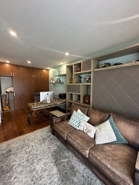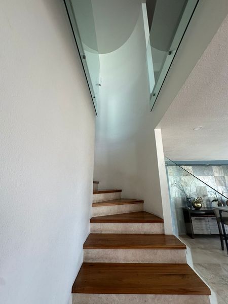 - Abajo, sala, comedor, cocina con espacio de ante comedor, cuarto de servicio, alacena, clóset de visitas, cuarto de juegos con baño completo entre paréntesis puede ser cuarta recámara.