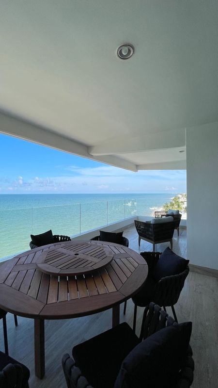 - Terraza con Balcón hacia el Mar con barra y jacuzzi.