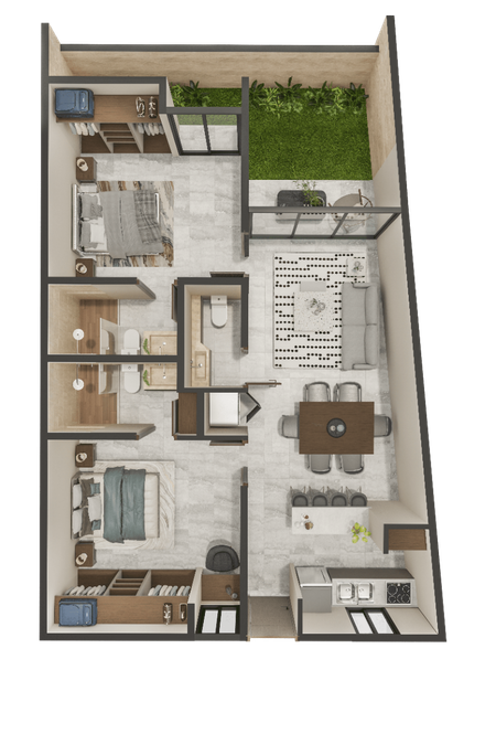 *Las imágenes mostradas son con fines ilustrativos, puede haber cambios en la propiedad, de manera que solo sirven como referencia y pueden variar, así como los muebles y equipamiento son únicamente representativos para ambientar los espacios y no están incluidos.