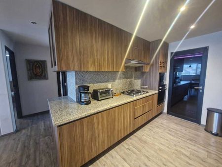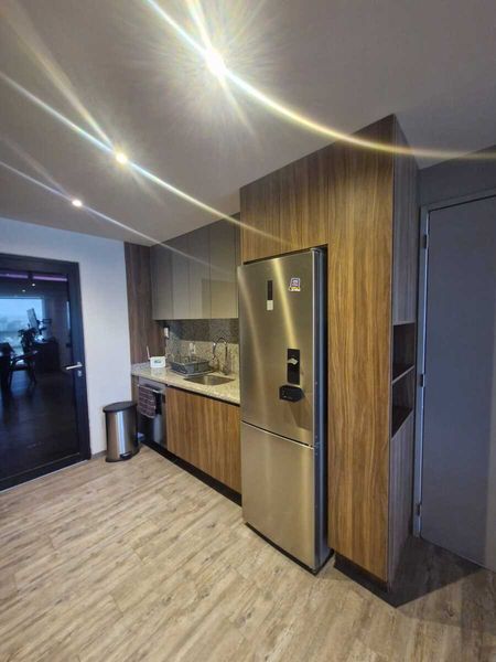 El departamento dispone de 2 habitaciones, 1.5 baños, cocina integral con finos acabados, área de servicio y una terraza con bonita vista, ideal para disfrutar de momentos de descanso. Además, cuenta con 2 lugares de estacionamiento y una bodega de 1.26 m² para mayor comodidad.