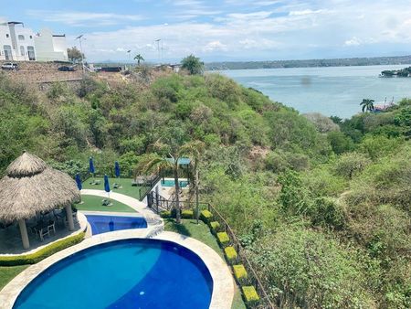 Gran oportunidad!!! Departamento en venta, ideal para fines de semana con vista al Lago de Tequesquitengo, dentro del Club Náutico Teques. Cuenta con dos recámaras, 2 baños, amplia cocina, sala comedor, jardín, jacuzzi y una espectacular terraza y baño de visitas.