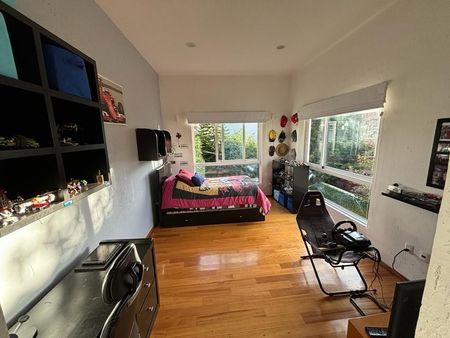 Amplio departamento que cuenta con 4 recámaras y 3 baños, 4 estacionamientos, muy iluminado, gran jardín. Tiene cuarto de servicio y área de lavandería. Cercano a escuelas, comercios y con varias vías de acceso.