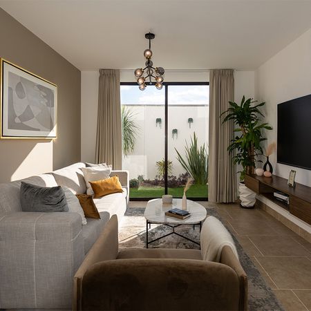 Disfruta de la luz natural que inunda la sala de estar, creando un ambiente acogedor y sofisticado. Las áreas comunes incluyen una alberca refrescante, gimnasio completamente equipado, y un salón multiusos para tus eventos. La seguridad es primordial, con caseta de guardia, circuito cerrado y vigilancia 24 horas.