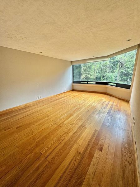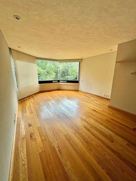 3 recámaras, cada una con vestidor y baño, sala, comedor, cuarto TV, despacho, baño de visitas, cocina grande con desayunador, cuarto de lavandería,cava, clósets de vajillas, 2 bodegas en el mismo nivel del departamento, 3 estacionamiento 2 en bateria y uno individual, vistas verdes en todo el departamento, calefacción de piso controlable por zonas, sistema de sonido con bocinas ocultas en