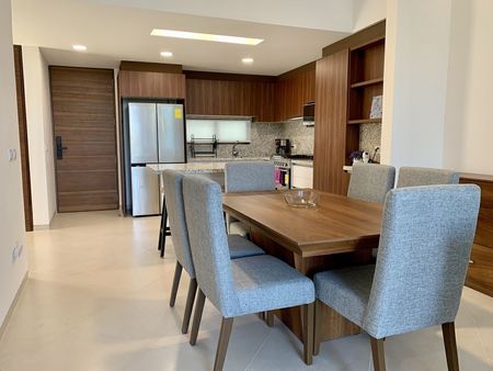 Este amplio y elegante departamento de 3 recámaras y 3 baños está completamente amueblado y equipado listo para que disfrutes de cada espacio al máximo. Con una moderna sala-comedor, cocina integral y 2 lugares de estacionamiento, tendrás todo lo que necesitas para una vida cómoda y sofisticada.