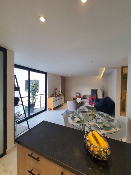 El edificio cuenta con vigilancia 24 horas, elevador y roof garden común muy amplio.