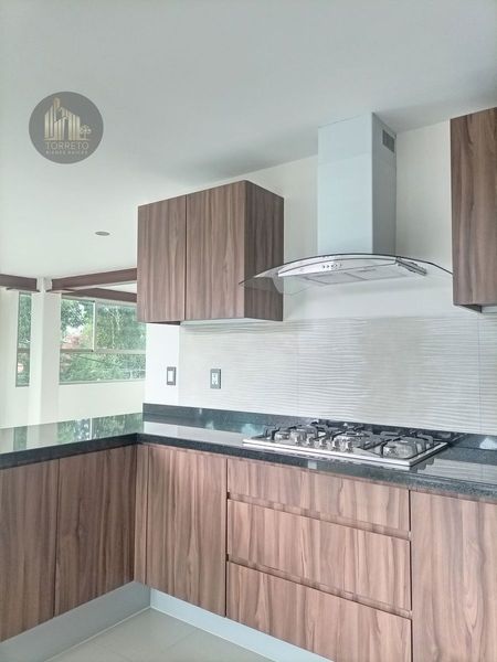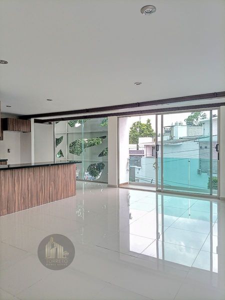 El departamento cuenta con un agradable y amplio balcón, la estancia da una sensación de mucha amplitud gracias a su cocina abierta, los ventanales de piso a techo proporcionan bastante luz y una vista hermosa al árbol que se encuentra en la entrada del edificio.