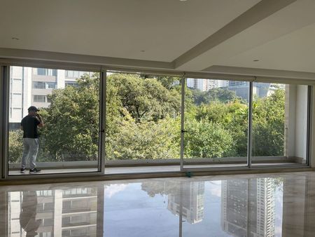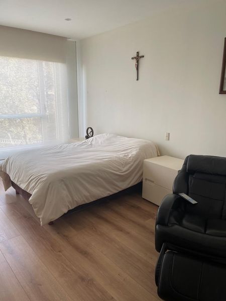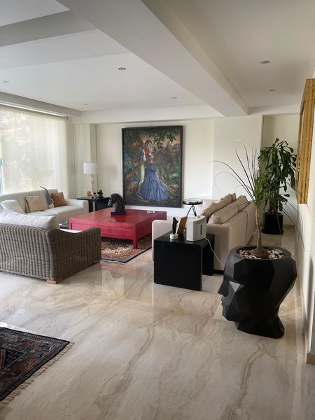 Seminuevo en buenas condiciones , 3 recamaras cada una con baño y vestidor , elevador directo al departamento, sala_comedor , cocina integral con barra de desayunador , estudio de TV, cuarto de servicio, bodega , black outs en todas las recamaras , vigilancia 24 horas.