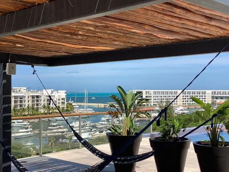 El penthouse  se vende amueblado y decorado, cuenta con 2 recámaras, cada una con baño, sala - comedor - cocina, amplia terraza con vistas maravillosas a la marina y al mar, 2 lugares de estacionamiento.