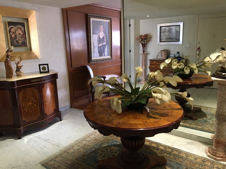 Departamento para actualizar en venta de los grandes en Palmas Corinto. Bonita vista y buena orientación. Piso alto. Pisos de madera, mármol y alfombra en recámaras. Persianas enrollables. Estancia amplia separada del comedor. Family ( que podría convertirse en una cuarta recámara) que se puede integrar a la estancia o al área habitacional. Tiene puerta corrediza. Recámara principal con vestidor, closet y baño. Segunda recámara con closet y baño. Tercer recámara con Closets y baño afuera. Cuenta con medio baño de visitas. Muchos Closets para guardar. Desayunador independiente de la cocina. Lavandería , cuarto de servicio. Bodega de 10 y aprox ubicadas en el garage. 2 lugares de estacionamiento. Jardín común grande. Salón de eventos y pequeño gimnasio. Vigilancia las 24 horas