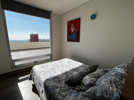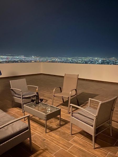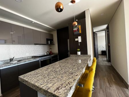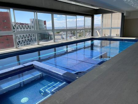 Departamento con terraza de 70 m2 con vista espectacular, cocina equipada con grano de granito, dos estacionamientos techados, 3 elevadores, cuenta con excelentes amenidades, alberca techada gym carril nado salón usos multiples, areas verdes