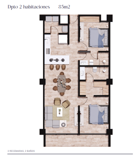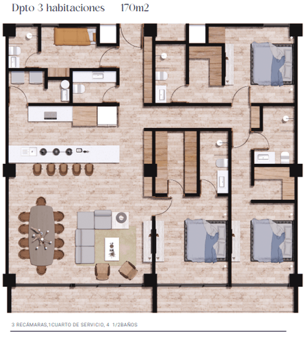Los departamentos cuentan con superficies habitables desde 85 m² hasta 170 m², distribuidos de la siguiente manera: