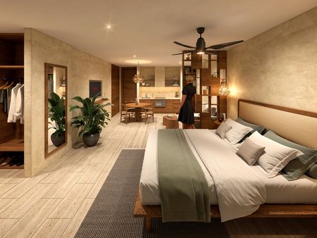 - Amenidades como alberca, roof_top, terrazas privadas, gym al aire libre, rooftop con amenidades, estacionamientos, estación de carga para bicicletas electricas, convenio con beach club, yoga loft, espacio grill, bar en roof top, concierge, seguridad 24/7, lobby, elevador, restaurante.
