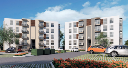Departamentos desde 94.91m2 de construcción en $4,099,000MN. Sala-comedor, 2 recámaras (principal con baño completo), 2 lugares de estacionamiento descubiertos.