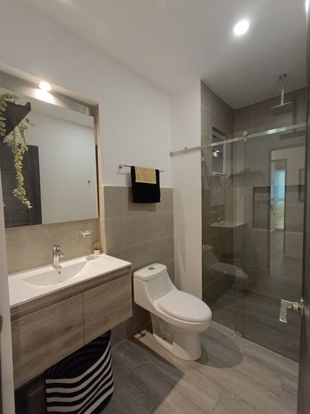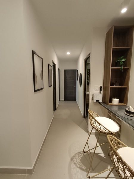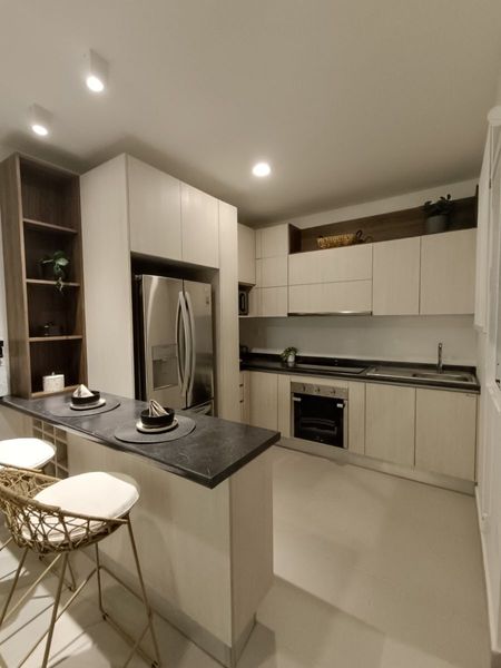 Incluye: Campana, parrilla eléctrica, horno eléctrico, domótica (alexa echo dot 5, cerradura digital, video timbre wifi, 3 focos inteligentes, sensor puerta/ventana), calentador de agua eléctrico, closets (MDP), cancel de vidrio templado de 9mm, lava manos.
