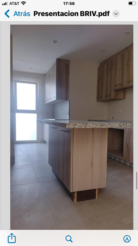 -Cocina integral en paneles MDF, en chapa de encino con cubierta en granito natural (Loseta en cocina y área de servicio.)