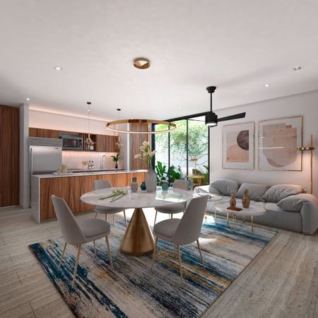 Complejo departamental dentro del periférico de tres niveles, ubicado en la zona norte de Mérida, a unas calles de Prolongación Paseo de Montejo.