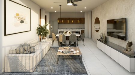 • Pisos interiores recubiertos de porcelanato color Ivory, formato 60 x 60 cm.