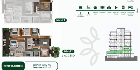 Los departamentos se distribuyen y diseñan en 2 niveles, con acabados de alta calidad, modernos, buena iluminación de buen tamaño.