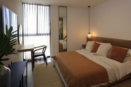 1 recamara, baño completo, sala-comedor, cocina equipada, barra desayunador.