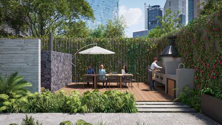 Las amenidades son un verdadero oasis dentro de la ciudad: jardines naturales, espacios de meditación y ejercicio, asadores, salón zen-fitness, biblioteca, co-working, cava de vinos y locker-hub +.