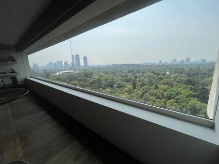 Ubicado en la exclusiva calle de Ruben Dario, con vista amplia increible al bosque de chapultepec .Remodelado por completo en el 2010 . Estilo moderno con estancia muy amplia de sala y comedor con vista al bosque de chapultepec. Sala de t.v.