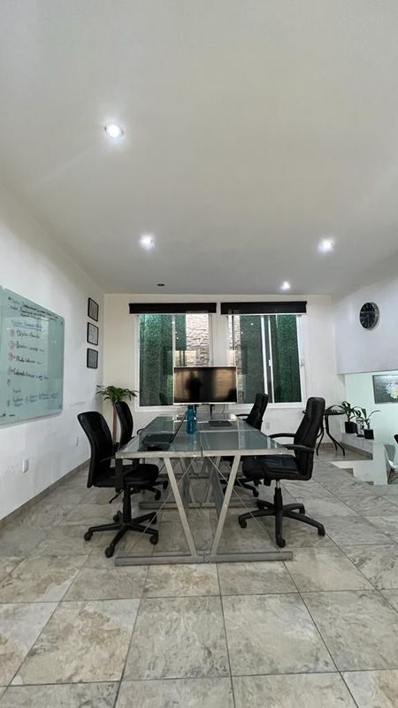 En el 1er nivel hay espacio para 4 oficinas que se rentan en lo individual o que pueden modificarse para 4 departamentos, ventanas con persianas, mosquiteros y película de seguridad; cuenta con 1 área de trabajo común, tipo cocineta con tarja, barra, gabinetes, mesa para 4 personas y pizarrón de cristal de 1.8mx 1.8 m y 2 baños completos.