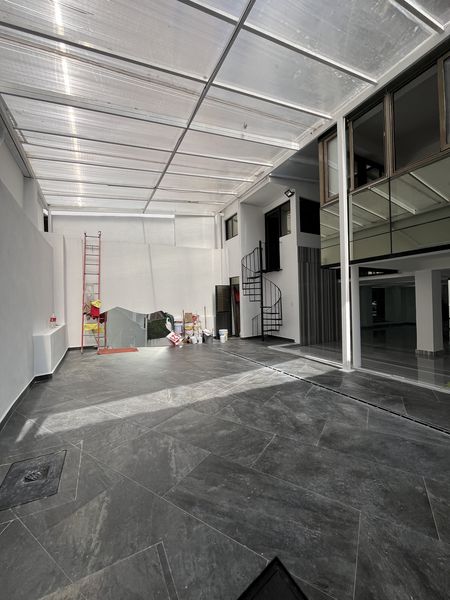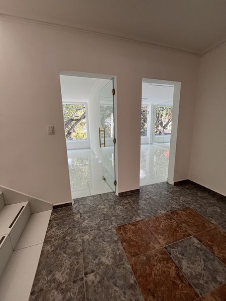 Cuenta con PB Y 3 pisos más , en la PB es un área totalmente abierta y al fondo tienes una terraza de muy buen tamaño. En los demás pisos se tienen algunos privados cambian las distribuciones. Todo el edificio está remodelado y tiene acabados en Mármol Italiano que lo hace ver muy elegante además que la fachada es de cristal y le da una vista increíble, cuenta con 6 medios baños y tiene 1 baño completo con regadera.